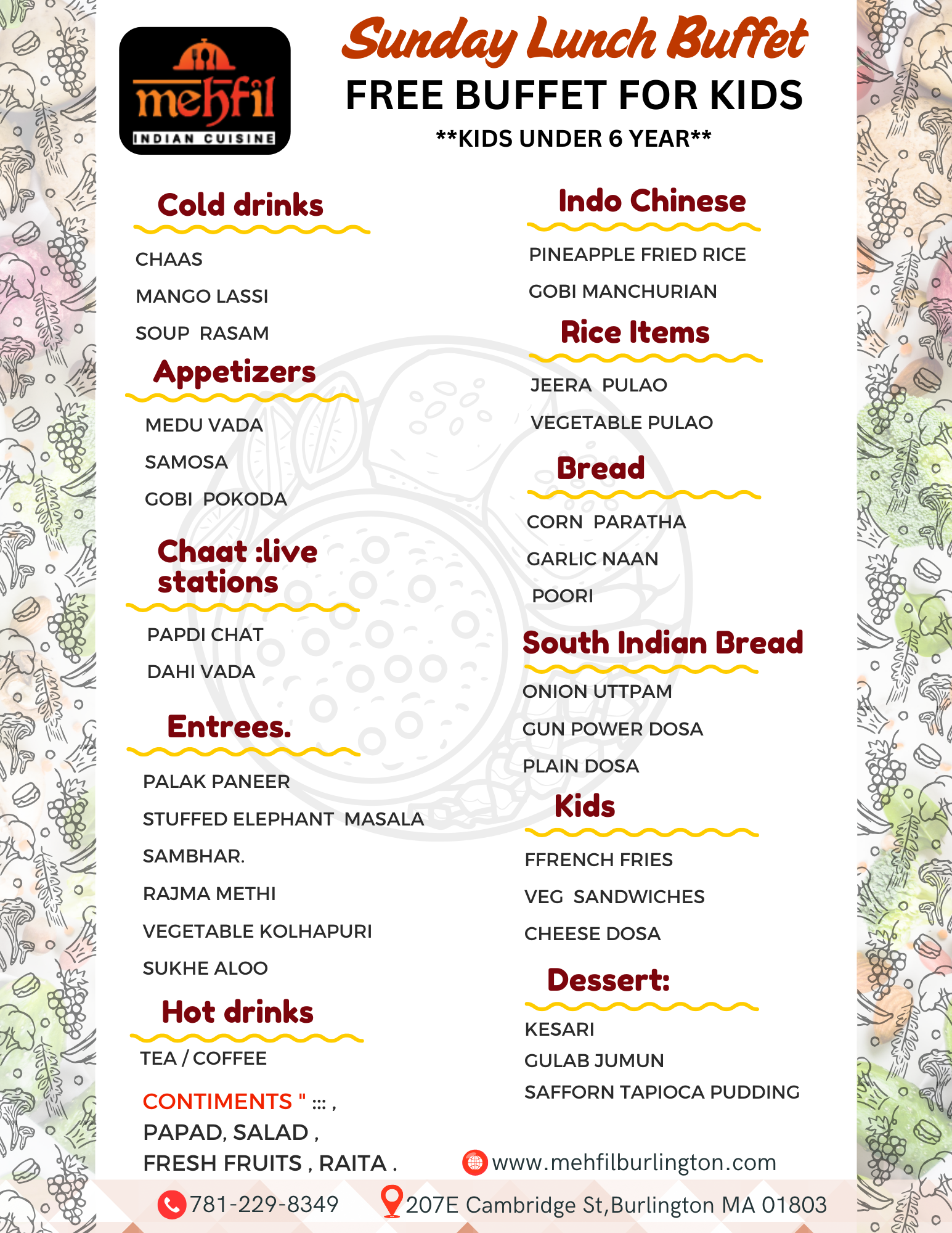 Looking for the perfect weekend feast? Mehfil’s pure vegetarian buffet is your go-to destination every Saturday and Sunday! Dive into rich flavors, vibrant dishes, and traditional Indian favorites — from spicy curries and crisp dosas sweet desserts and more .